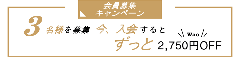 ※募集キャンペーン 入会すると毎月の月会費がずっと2,750円オフ